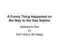 A Funny Thing Happened on the Way to the Gas Station. Nowhere to Run. Or. Don't Worry, Be Happy. The ideas presented here are explored at greater depth in...